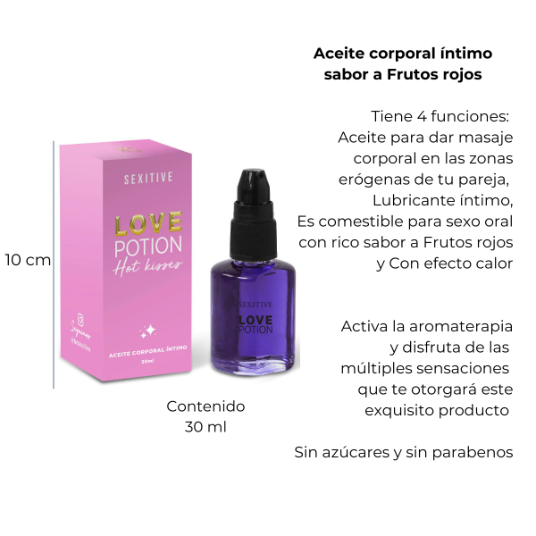Es un Aceite comestible con sabor a Frutos rojos, ideal para sexo oral.