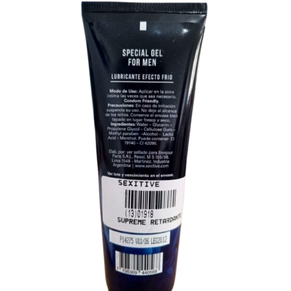 Es un gel lubricante con ingredientes naturales como el extracto de menta, produce una menor sensibilidad en el pene, lo que ayuda a controlar las erecciones y prolongar el momento de la eyaculación.